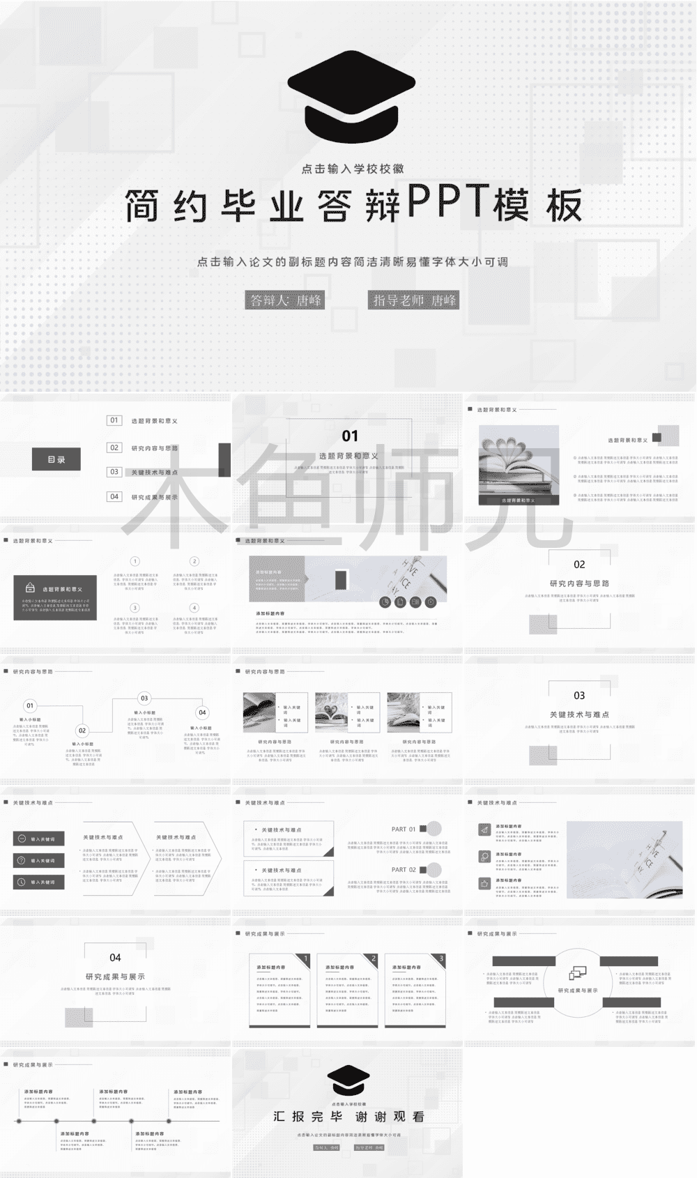 合集:学术答辩模版系列-03 简约风PPT模版