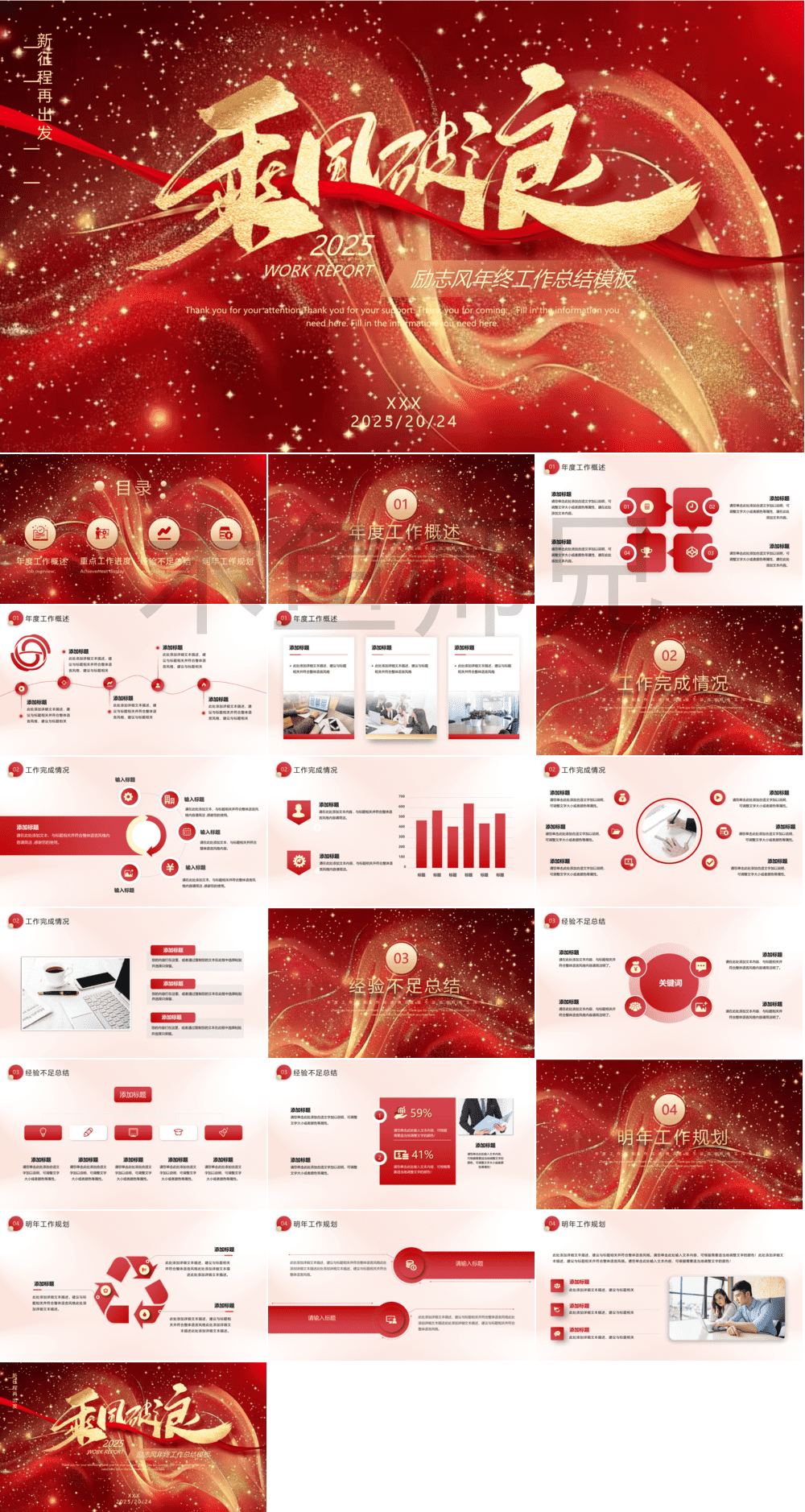 合集:红色乘风破浪工作总结工作计划PPT模板