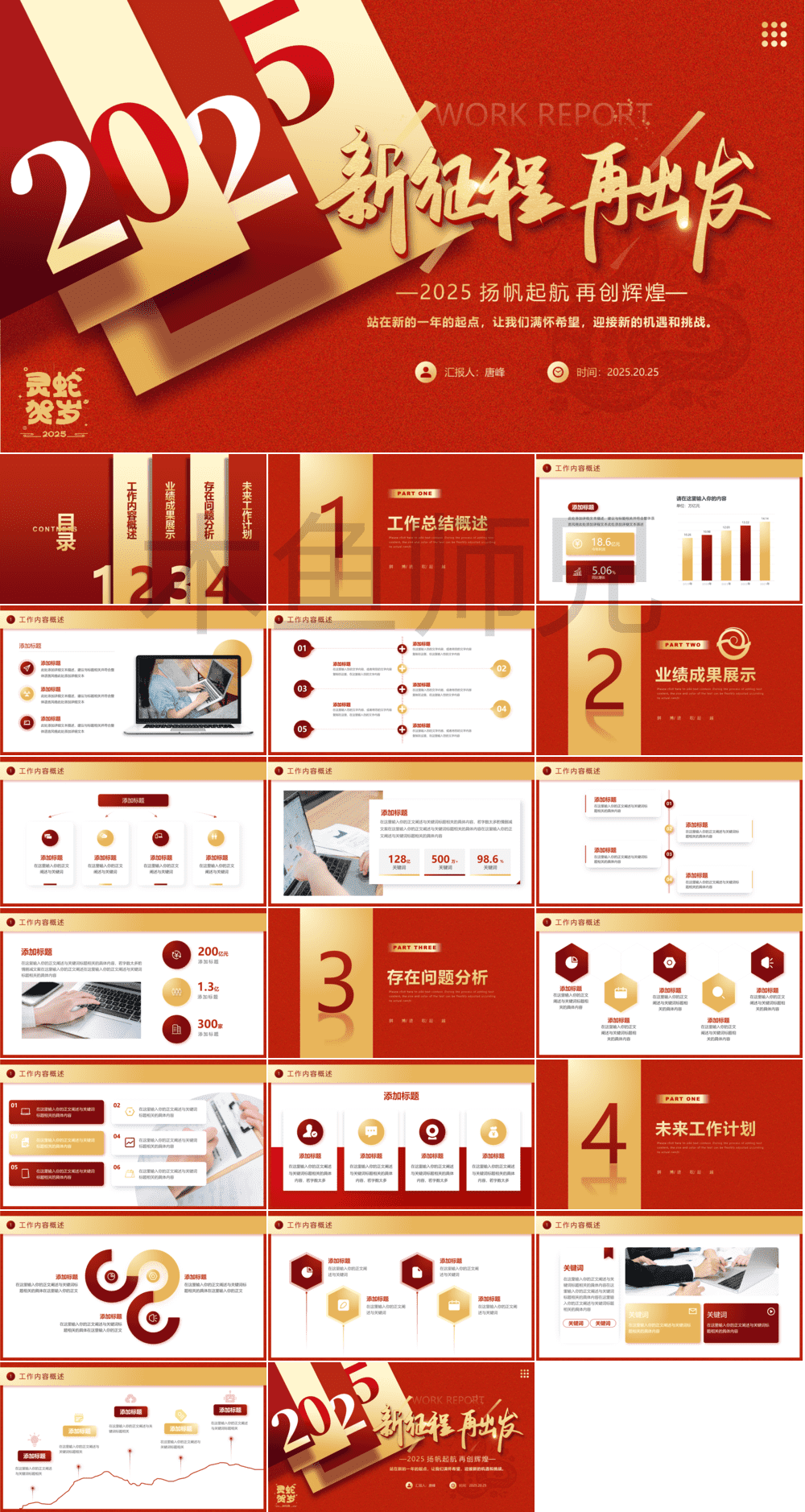 合集:红色乘风破浪工作总结工作计划PPT模板
