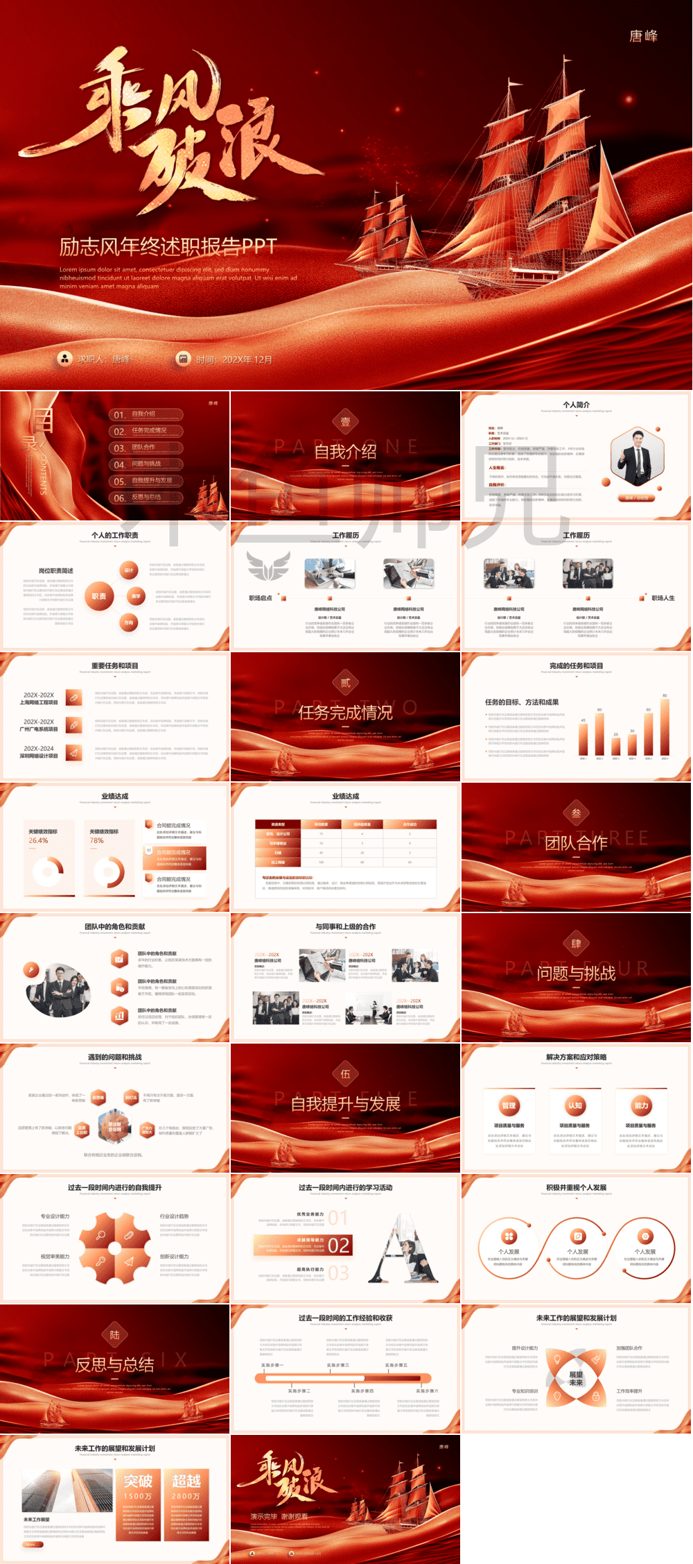 红色乘风破浪工作计划&工作总结PPT模版22.pptx