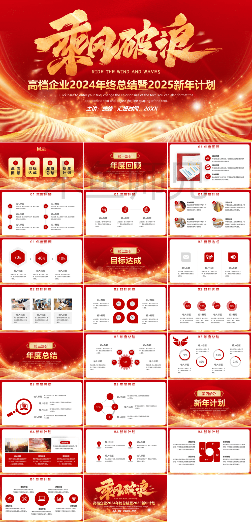合集:红色乘风破浪工作总结工作计划PPT模板