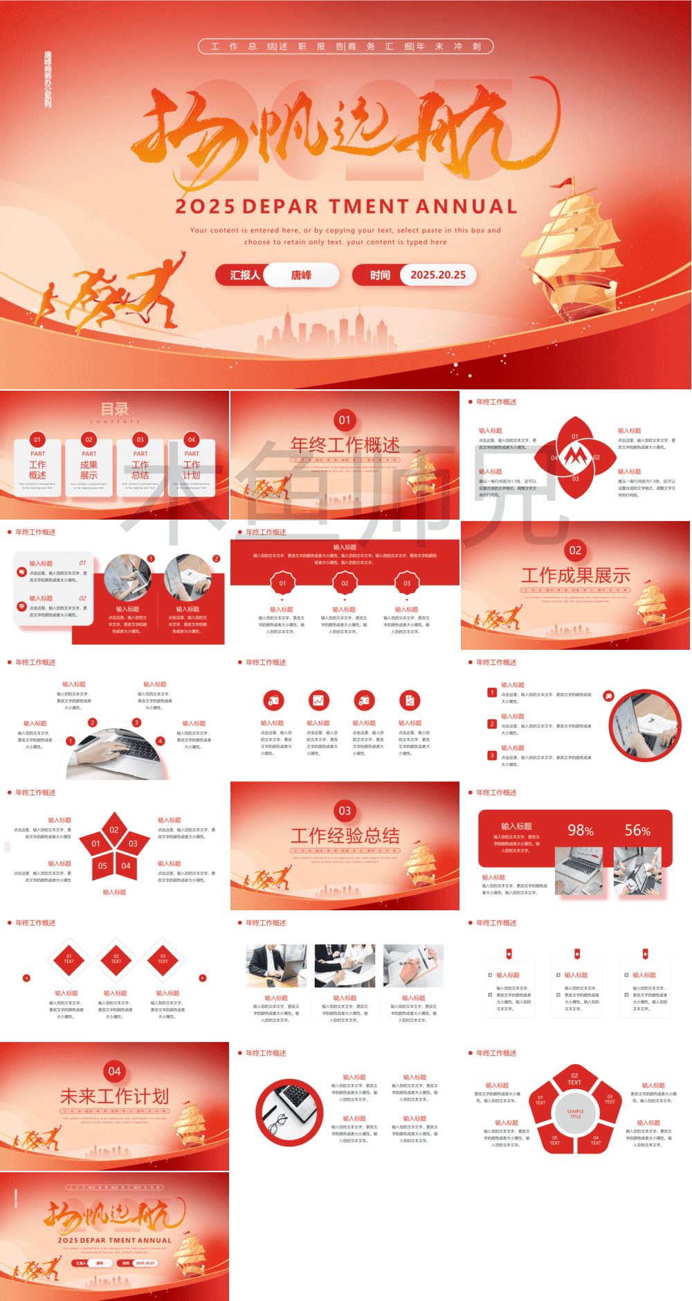 合集:红色乘风破浪工作总结工作计划PPT模板