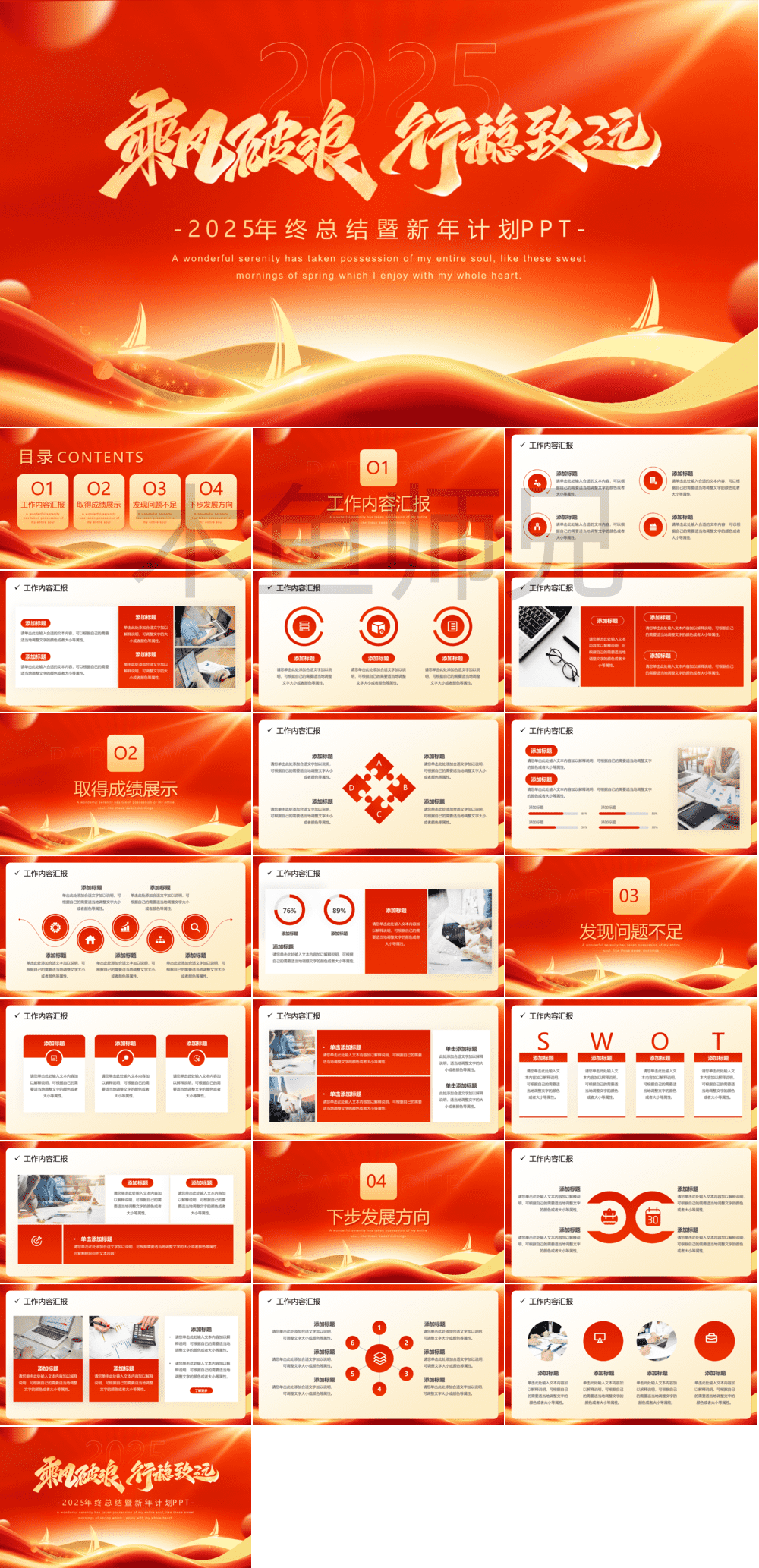 红色乘风破浪工作计划&工作总结PPT模版25.pptx