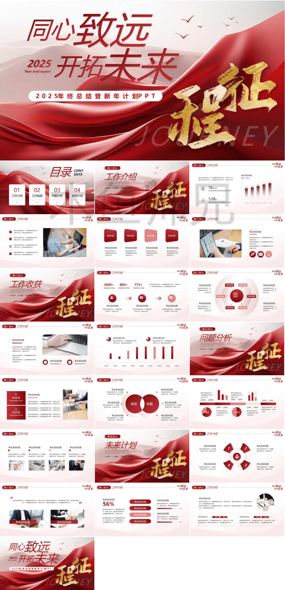 合集:红色风格工作总结工作计划PPT模板