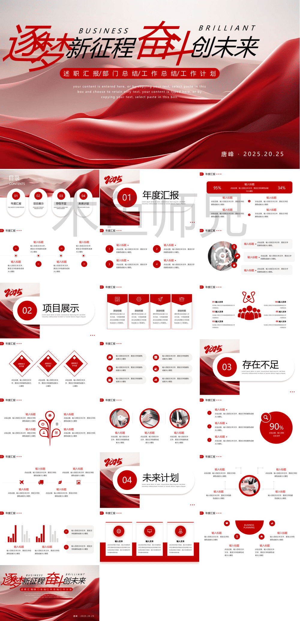 合集:红色风格工作总结工作计划PPT模板