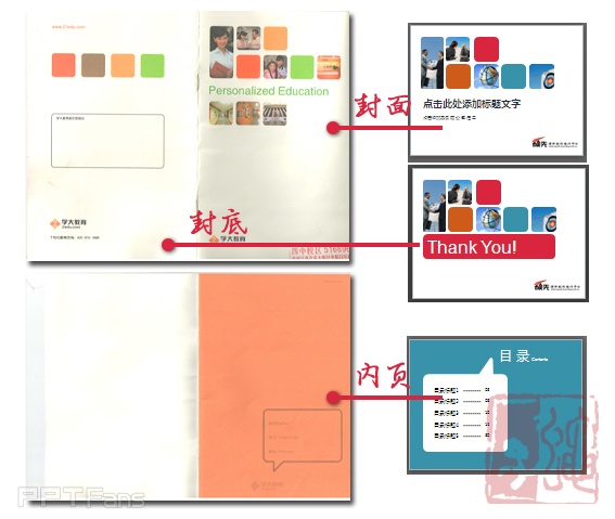大多的PPT模板会是相同的封面封底,雷同的内页版式。(如下图)