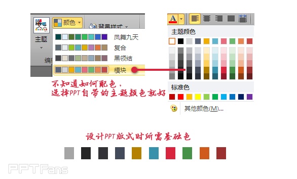 封面完全吸取了小册子封面的风格版式,找了些比较职业化图片,换了一些比较亮丽的颜色。封底根据封面稍作了些调整。章节页吸取了对话框的感觉,稍微调整了大小和方向。如果做PPT模板之初不知道如何配色,PPT自带的配色方案已经能满足需求,选择你喜欢的一组配色方案作为PPT模板的基础色。