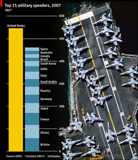 嗯,美国还是军费开支最大的国家,需要注意的是,这张图表容易让人产生误解,就是右侧各个国家的军费开支,实际上每个色块的高度是代表该国家的军费开支,而不是从底端到该国家名称所在的高度。