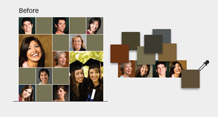 如果有很多图片放在版面上,如何让他们看起来整齐协调,而且更有活力呢?看看来自before-after 电子杂志的例子吧: