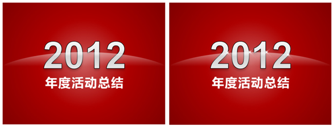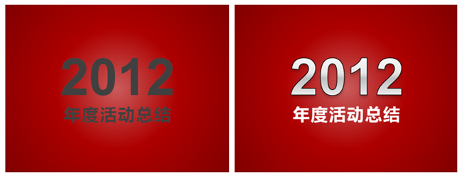 背景以暗色调为主,前景的文字用亮色,前景背景的强烈对比,突出文字,为避免单调感,我们为“2012”文字添加渐变和描边、投影效果(具体设置不做阐述)。