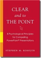 周末我在关岛(在大阪的东南,距离三小时的路程)快速地阅读了一本关于如何更好的运用Powerpoint幻灯片来进行演讲的书――由Stephen Kosslyn编写的《简明扼要:八条运用Powerpoint演讲的心理学原理(Clear and to the point: 8 psychological principles for compelling powerpoint presentations)》。