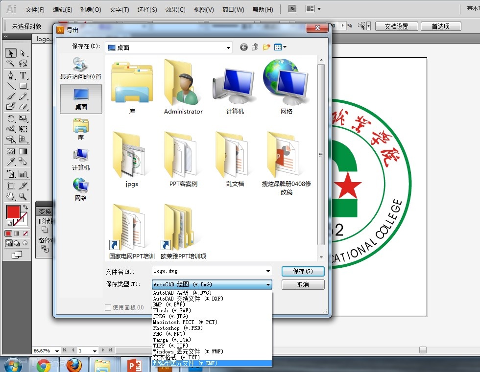 05.最后把logo图片按delete删除,然后点菜单栏里的“文件”》“导出”,选择增强型图片“EMF格式”,即可导出矢量图,可直接插入到PPT中了。
