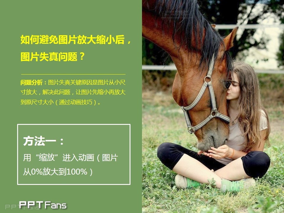 PPT中,图片放大缩小,是最常用的动画之一。图片放大,往往会遇到图片失真问题,今天PPTFANS的YOYOO,跟大家一起分享,如何避免PPT中图片放大画质失真问题。并在最后附上PPT源文件。