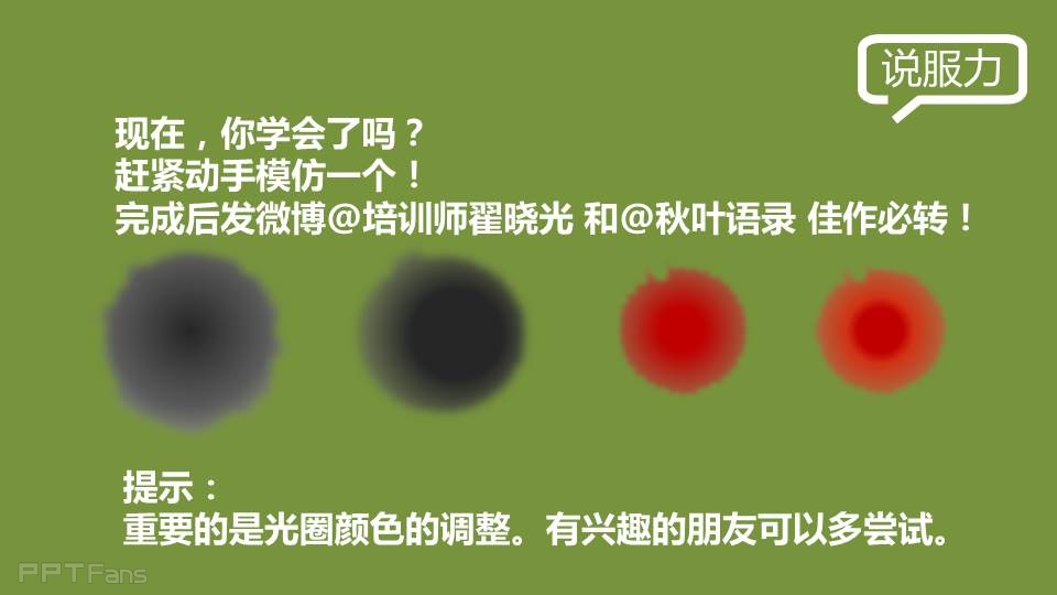 不过今天围观完@培训师翟晓光 的教程,我对大家模仿的要求有所提高,我希望大家用这几天学到的墨迹,墨滴等效果,做一个文化风的一页纸PPT,我所谓一页纸PPT,是希望大家一看到就理解在工作或生活中那些场合可以应用模仿的含义。