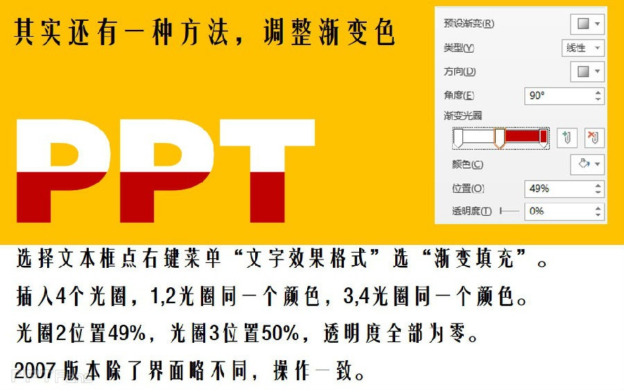 - 通过今天的教程你还可以动手感受一下渐变色填充的作用,其实还可以完成三色字,多色字效果。