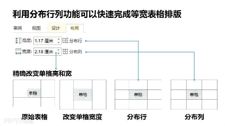 布局菜单最灵活的功能是可以任意分布指定行列的宽度,你可以让表格全部行等高,也可以选择部分连续行等高,还可以手工对指定单元格调整行列高度,充分理解表格布局菜单的强大,你就能让表格变栅格。