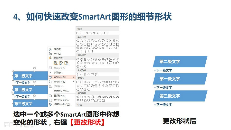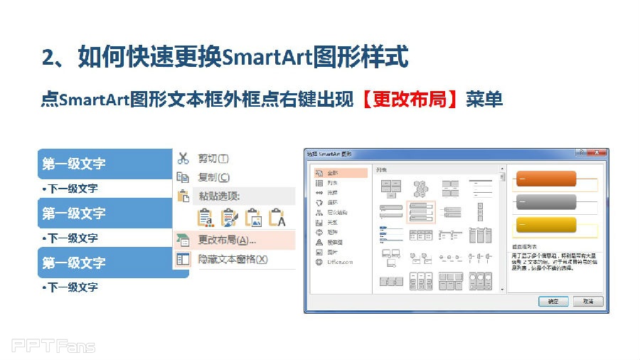 如果你对Smart图表还完全不懂,请回复关键词”教程65“看入门操作教程,今天的教程会告诉你们如何让SmartArt图表千变万化的秘密。