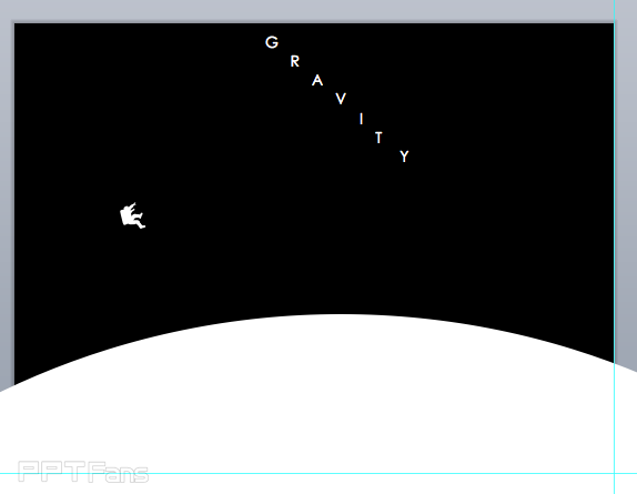 2、搭建场景。画一个大大的【圆】,假装它是地球,实际上我们只用得上它一侧的轮廓。如果想用【曲线】工具画也可以,不过用【圆】画严谨一些。依次打出G,R,A,V,I,T,Y几个字母,斜成一条直线排列好。