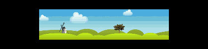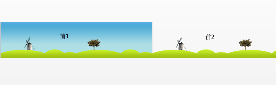 1、首先复制黏贴最前面的带磨坊小树的图片(hill-with-windmill.png)到页面上。按住”shift"键将图片的长度拖放到和页面的宽度一致。下面是关键——复制一份,把复制出来的这份图片接到页面的右边,我们就会发现,两张图片天衣无缝地接到了一起。不点击的话,谁能看出这是两张图片呢。