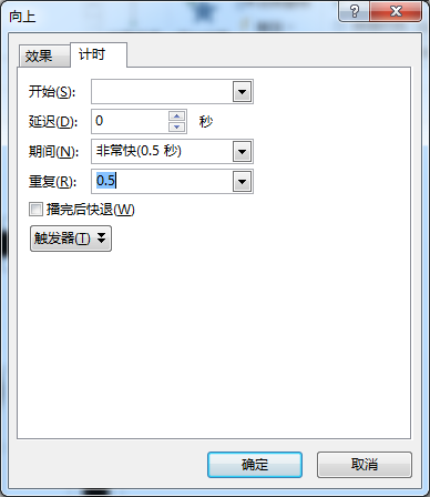 首先选中所有要上移的素材,为他们同时添加【路径】—【直线】,效果选项选择向上。这时默认的移动距离显然过长。然后点击【效果选项】右下角的小箭头,进入【计时】选项卡,将重复的值设定为“0.5”。这时再看移动距离,顿时变成了原先的一半!原来重复值不仅仅可以设定为整数,还可以设定为小数!这个设定,在以后的动画场景中我们还可以用到。