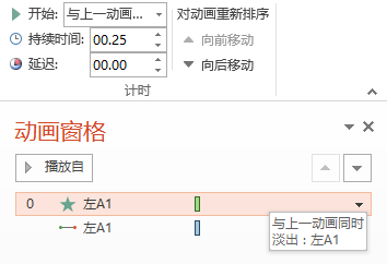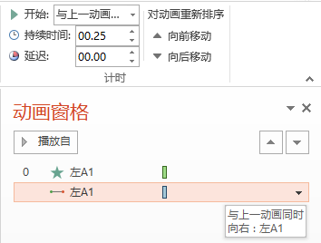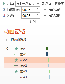 3、分别为左A2、左A3设定动画延时效果各为0.25秒。现在第一个箭头的动画效果就这样搞定了。
