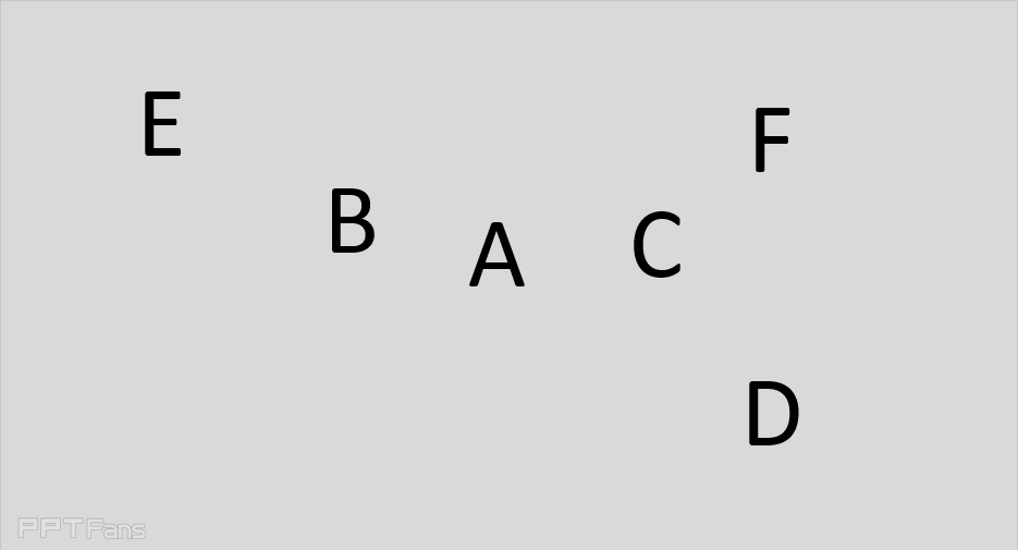 4、下面就开始重复的干活吧。分别设定右边、左边的箭头动画效果。辛辛苦苦搞定第一个FEEDBACK的效果。然后,好消息来了,我们可以将A系列连同剪影、箭头作为一个整体的素材复制粘帖5次,按照位置、大小、颜色进行调整。并在动画窗格中设定延时效果。 以ABCDEF为序。六个剪影+箭头的出现顺序是这样的,请按照顺序慢慢调节,一个一个来吧。