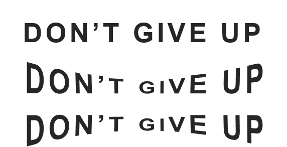 先复制一份文本,"don't give up",把中间几个字母的字号调小一点。两边字号最大,中间最小,做出一个下凹的样子出来。