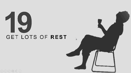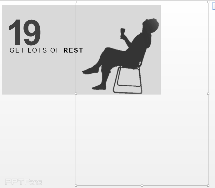 咋一看,够简单吧。椅子上的人向后翻倒,然后震的19和“GET LOSTS OF REST"的小心肝一颤一颤的。