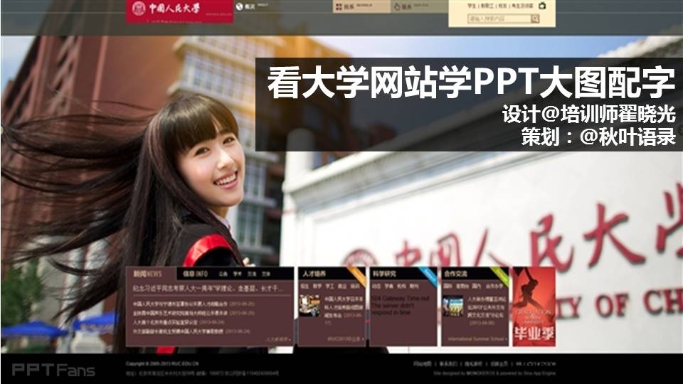 不过作为PPTer要善于从这些生活中的灵感中找到设计的创意,干脆我们就看几个中国好大学的网站,看看能学到什么?