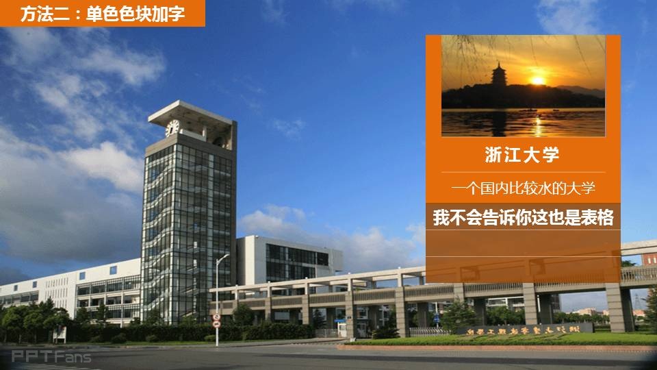 方法2:单色色块,在大图恰当位置放较大面积单色色块,可以在大图视野上创造出一个注意力焦点,然后在里面填文字。