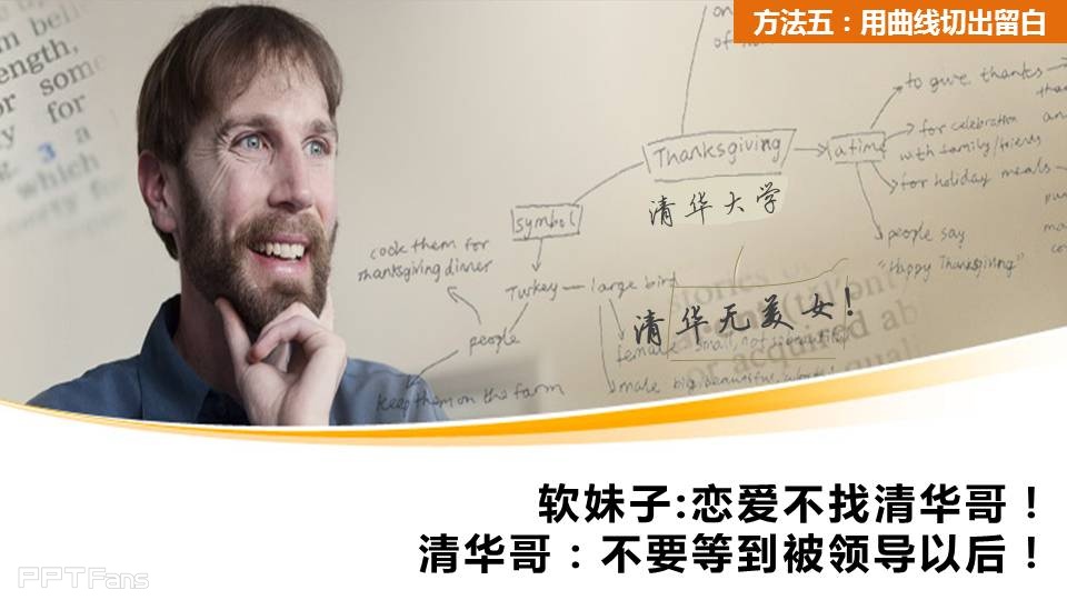 方法5:曲线切版,曲线什么的最有爱了,来点弧线就是美。留白的位置就是你写标题的好地方。