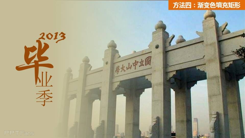 方法4:渐变填充,在图片的局部放一个渐变色填充矩形,然后配上文字,立即带入回忆感。