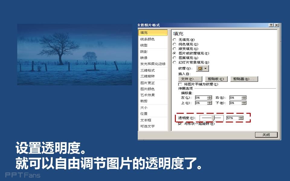 图片的透明度可以通过加一个透明色矩形遮挡后来调整,那么有没有更方便直接灵活的方法呢?