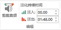 但是这样会有个问题,背景音乐声嘎然而断,感觉实在不好,我们还要为背景音乐添加一点淡出的效果,也就是让最后几秒的音乐声音逐渐降低直至消失。这里在设定【淡出】时间为1分48秒,最后5秒钟的时间让背景音乐缓缓消失。