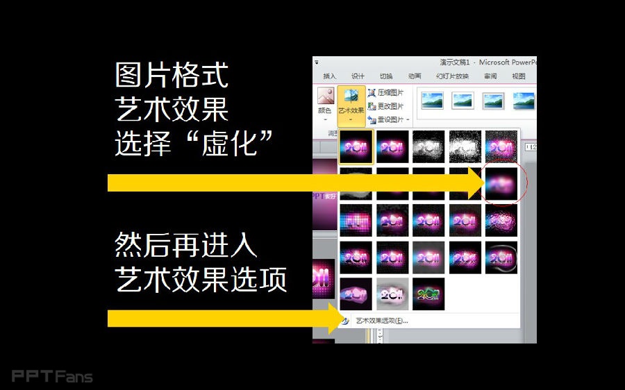 3、如果你找不到艺术效果……不好意思,这个2010以上版本才有~该升级了
