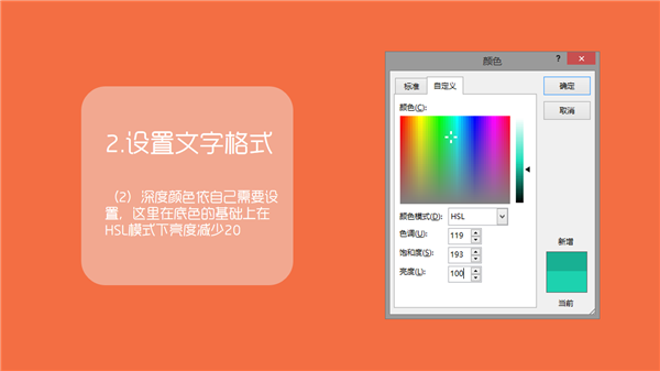 (2)深度颜色依自己需要设置,这里在底色的基础上在HSL模式下亮度减少20
