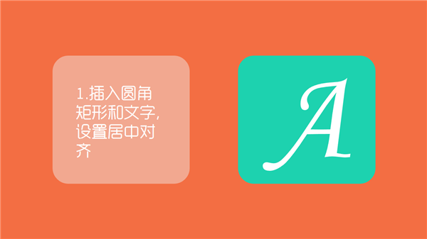 第一步:插入圆角矩形和文字,设置居中对齐