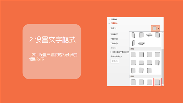 (5)设置三维旋转为预设的倾斜向下