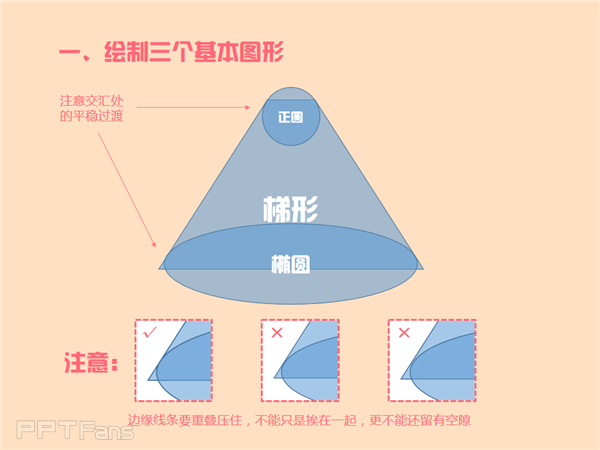 第一步是基本的形状绘制,绘制时注意下方的提示,可以放大显示比例,多花一点时间调节。因为这里不做好的话,后面会出现问题。