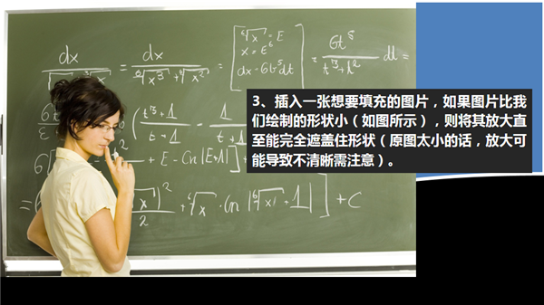 第三步:插入一张想要填充的图片,如果图片比我们绘制的形状小(如图所示),则将其放大直至能完全遮盖住形状(原图太小的话,放大可能导致不清晰需注意)。