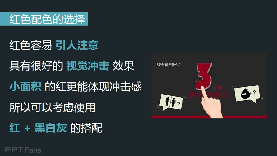 红色容易引人注意,具有很好的视觉冲击效果,小面积的红色更能体现冲击感,所以可以考虑使用红+黑白灰的搭配。