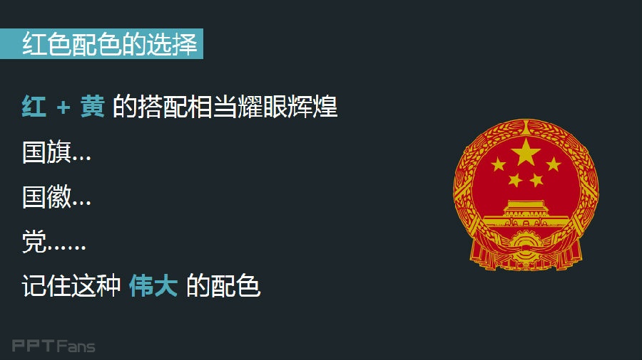 红+黄的搭配相当耀眼辉煌,国旗、国徽、党中央...记住这种伟大的配色。