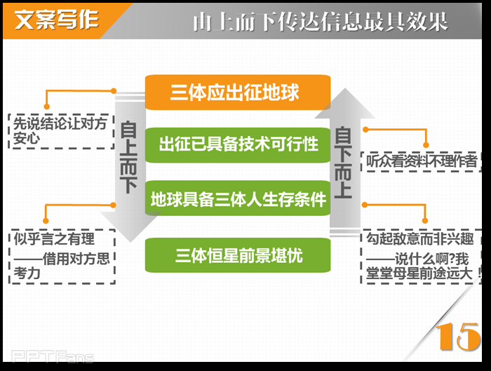 然后,这张PPT继续被秋叶老师和巴爷否决了,理由是地球人可能对三体知道的不太多,不合格!(当然我觉得这么大的地球危机,每一个有责任感的地球人都该知道啊,不顶不转都不该算地球人啊!)