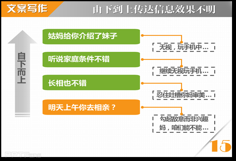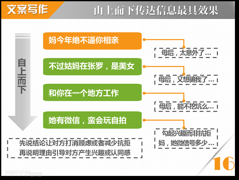 具体的,我举一个《麦肯锡教我的写作武器》中的一页PPT为例子吧,这一页的内容是说明信息传达顺序的影响力差异的。