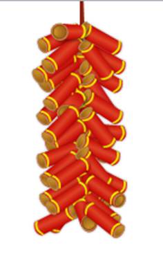 比如这串鞭炮,除了运用到形状剪除、联合,置于顶层、底层效果,形状组合、编辑顶点功能,还运用到纯色、渐变填充、阴影…。