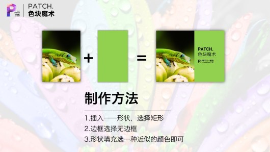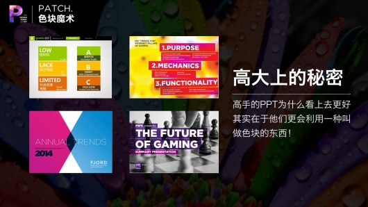没错,本教程将揭秘高端PPT中必备的元素——色块。