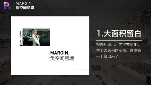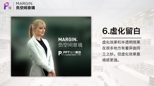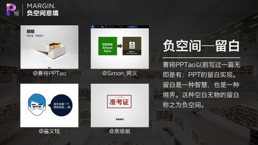 在PPT设计中,很多高手都会充分利用这一原理。他们的PPT看上去内容很“少”,但却让人感到更加舒服。其中的奥秘在于留白。留白是一种智慧,也是一种境界。相对于充满内容的部分,这种空白无物的留白称之为负空间。