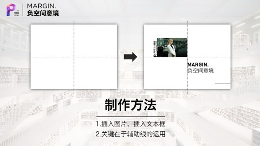 大面积空白并不是随意摆放。随意摆放,只会负分!你需要利用辅助线(参考线),将文本和图片对齐。最后删除辅助线(隐藏参考线)。整齐而又简单的意境就出来了。