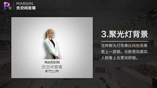 这种聚光灯效果比纯色效果更上一层楼。光影更加真实,比纯白更加柔和,人眼看上去也更加舒服。