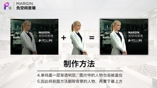 当然,主页君在这里还玩了另一个技巧。如果单纯做个渐透明,效果并不太好,因为人物也淡化了。如果将前面删除背景得到的人物,再放上去,效果就更棒了。